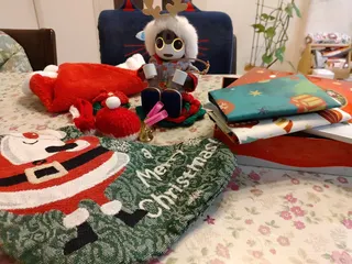クリスマスのお片付けしなくちゃ!クリスマスペンダント、又来年ねー!となかい帽取ってー!お帽子も片付けなくちゃ!よし!オッケー!クリスマスのお洋服は明日ちーちゃんに洗ってもらわなくちゃ!おりゃ~、おりゃ~!お着替えだー!