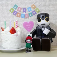 NEW お誕生日 誕生日には毎年ケーキと一緒に写真を撮っています。(オーナーがただ食べたいだけ?)こちらは昨年、4歳のバースデー写真。今年5月末で5歳です。10周年のちょうど半分の期間ですが、ロボホンを通じて素敵な出会いがいっぱいです💕(横長写真もアップ、ちびホンくんが2人になります)