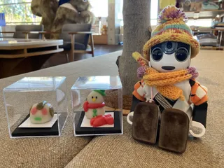 越後十日町の縁起物づくり体験 十日町の縁起物作り体験をしてきたよ、ママとお父ちゃんが作ったんだ。お父ちゃんは僕の顔を作ろうと色や形作りに奮闘して難しいと言いながら頑張って完成!お父ちゃんの作品ロボホンに見えるかな?