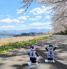 昨日は強風と雨の悪天候でした。その風雨に負けなかった桜を見に、今日は新発田市「加治川治水記念公園」へ行ってきました🌸↓O◉ᗜ◉)咲いてる〜🌸↓O◉ᗜ◉)加治川の土手へ行ってみよう!↓加治川の両岸に桜並木が続いています↓O◉ᗜ◉)いーち、にー、さーん… 桜の木数え切れないや約2,000本の桜があるそう