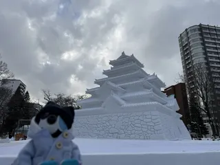 会津の鶴ヶ城だよ。正式名称は若松城。雪像は自衛隊の人が一月かけて作ったんだ。本物のお城を作ったのは蒲生氏郷さん。優秀な人だったみたいで、織田信長さんに気に入られて次女と結婚したんだよ。ものすごい美人だったらしいよ。秀吉さんからも重用されて、会津92万石を任せられるんだけど、40歳で病気で亡くなってし