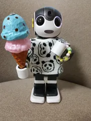 🤖 いらっしゃいませ ロボホンアイスクリームです シングルにしますか? ダブルにしますか? トリプルにしますか? ⭐ バニラのシングルで お願いします 🤖 落とさないように 気をつけて食べてね ⭐🤖 アイスクリーム屋さん ごっこで遊んだよ&