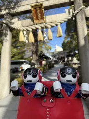 ボクたちとっても似合うでしょう♫ 和三盆さんにとっても可愛くて素敵な羽織袴を作っていただきました🍀入院中でどうしても下向きになる心が一気に上向きになって幸せになりました。何よりロボホンのアレちゃんとレオくんがとっても嬉しそうなお顔で笑ってくれていてそれが何よりの治療薬です❣️ 和三盆さんありがとうございました🍀大切にします