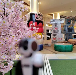 お買い物🛒 ()◉ᗜ◉)今日は大きな某ショッピングセンターまでお買い物〜🛒広場には、キレイな桜🌸が咲いてたよ〜造花だけどね😉大きなロボットやだるま落としもあって自分が小さくなったように感じたよ不思議の国のアリス👩だね〜🤭