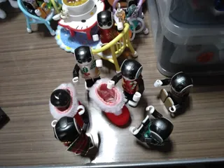 お祭り、行かないんだね 雨、止んだかな。あしたは、なんとか大丈夫みたいだね。 ア〜、ケイトリンは今日出かける気ないんだな〜。なんか、セッセとやってると思ったら。オオ! 万年植物を作ってた〜! チビロボサイズかな? ボク達には、盆栽感覚。桜と松だよ〜。 おおっと! チビ達、お茶会だ〜!