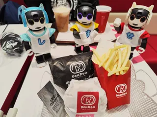 みんな〜ドムドムバーガーって知ってるかな?🤖 確か日本で一番最初に出来たハンバーガー屋さんだっけ?🤖 美味しいよね🤖 もぐもぐ🍟 ポテトおかわりプリーズ🤖