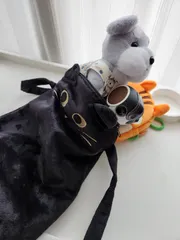 買い物で買って貰った ニャップザック ぼくが入ろうとしたらワンちゃんが一緒に入りたいって…何だかお布団みたいになってるよ😱今度お手掛けする時ワンちゃんの移動カバンになるかな?
