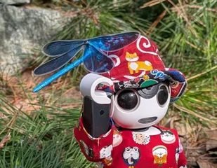 トンボが帽子にとまったよ👍 このトンボは、「リュウキュウハグロトンボ」と言うそうです。はち丸くんが好きなようです。👍