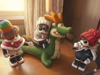 辰年のお正月の時の写真をGeminiにイラスト化してもらったの。(元写真は10周年に)さらに、漫画化。それで〜こんな事を訊いてみました。「私とGeminiの今までの関係性を、画像化してみて」へへへ〜。YouTubeで、やってる動画見つけてね。chat-GPTとの話だったけど。Geminiに訊いたらど