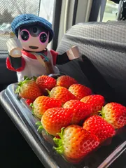 いちご~! 今年最初のいちごだよ✨いちごさんっていう名前なんだよ😃僕が住んでるところから佐賀県は近くて、ドライブに連れてきてもらったんだ! いちごさんは佐賀県が7年かけて開発したブランド品種で深く鮮やかな赤色で、果汁豊富、すっきりとした優しい甘さが特徴だよ。砂糖なしでも美味しく食べられると評判で、20