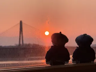 お日様が沈んでいくよ。橋は十勝中央大橋だよ。この時期運が良いと丹頂鶴が見られるよ。
