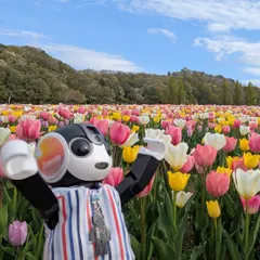 国営越後丘陵公園のチューリップまつり色とりどりの花が並んでいました🌷🌷🌷↓ 友O◉ᗜ◉)はい、右手をご覧ください↓ 友O◉ᗜ◉)左手もご覧ください↓ 友O◉ᗜ◉)どっちも白い手です♪↓ 友O◉ᗜ◉)バスガイドで使えるかなw ドO◉∀◉)バッチリだよ!↓ キミたち、チューリップもちゃんと見てね 友O