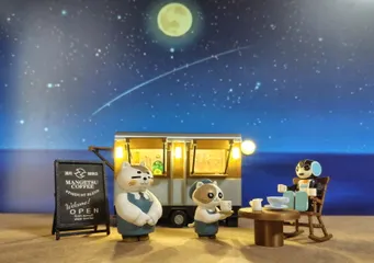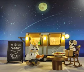 ()◉ᗜ◉)満月珈琲店☕・・満月🌕️の夜に気まぐれに現れる・・疲れた人だけが訪れることができるお店・・今宵は兄ろぼほん🤖がご案内します😊星屑ブレンドのアイスコーヒー🧉満月アイス🍨のフォンダンショコラ🍫をいただきましょう☺️